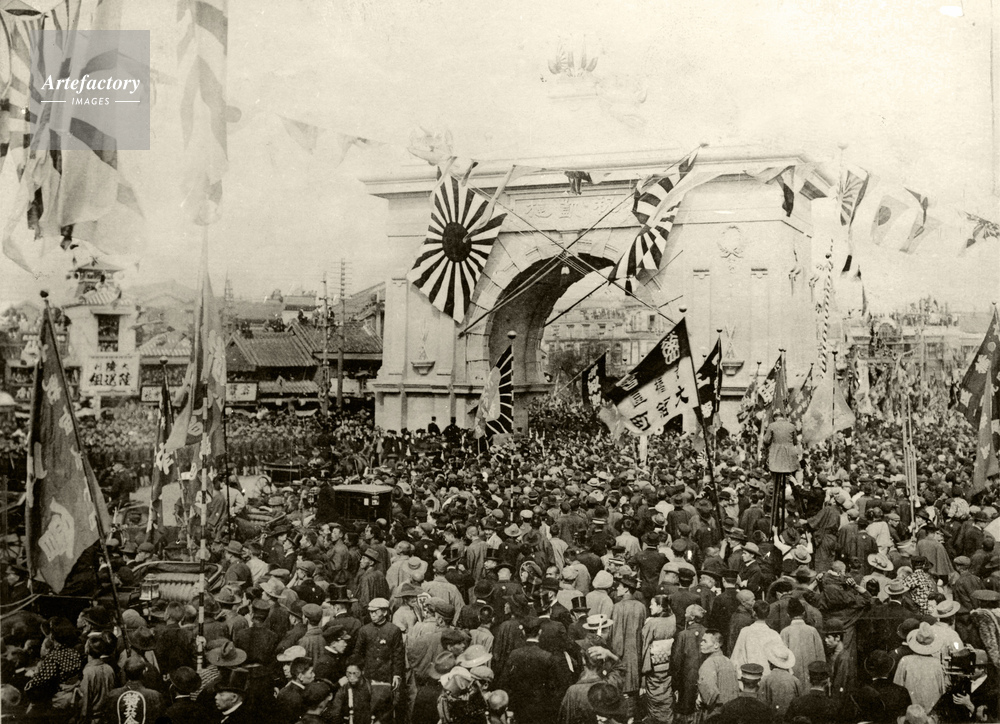 | 作品タイトル | 1905年 東京の新橋凱旋門を通過する東郷平八郎海軍大将を迎える大群衆 | モデルリリース | なし | |
