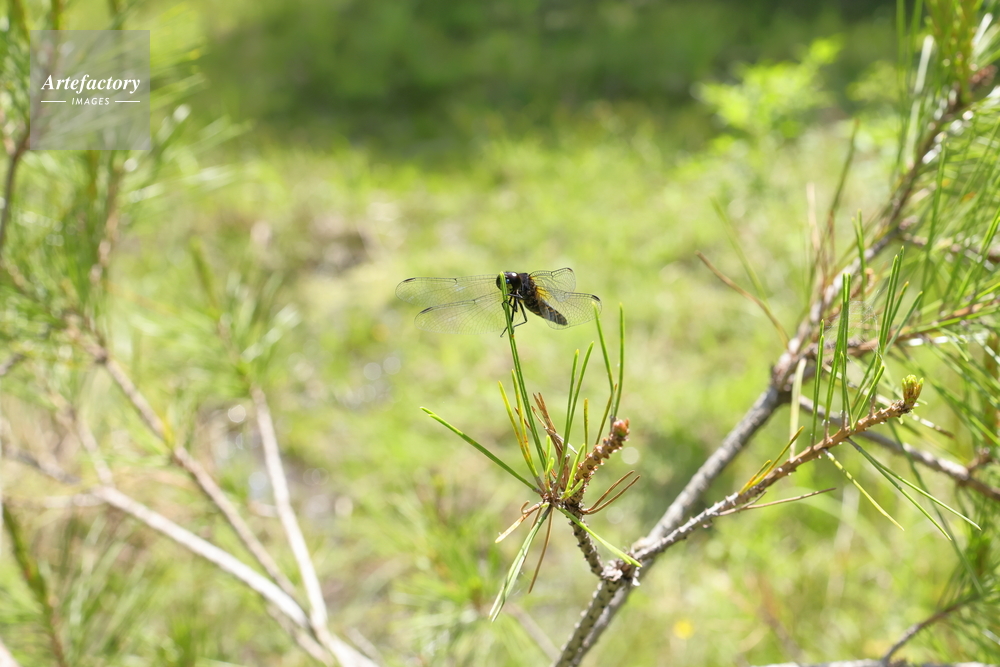 | 作品タイトル | 湿地横の松葉に止まるハラビロトンボ | モデルリリース | なし | |