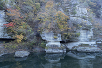 塔のへつりの奇岩と紅葉