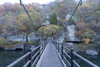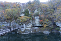 塔のへつりの藤見橋と奇岩