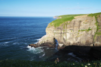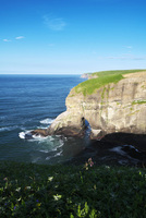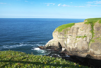 晩成海岸の断崖(断壁)と地層と太平洋