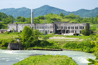 旧北炭清水沢火力発電所と清水沢ダム 夕張川