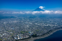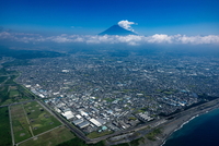 富士川河口と富士市の街並みより富士山
